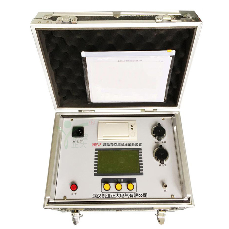 KDVLF-80 超低頻高壓發生器主要用于電力部門對PE(聚乙烯)/XLPE(交聯聚乙烯)等塑料電力電纜的非破壞性絕緣耐壓試驗,具有電源過流、高壓過流、油箱過熱保護功能,輸出調壓器不回零高壓不能啟動等功能,是傳統工頻耐壓試驗設備的換代。KDVLF系列超低頻高壓發生器接合了現代數字變頻新的技術,采用微機控制,升壓、降壓、測量、保護自動化,并且在自動升壓過程中能進行人工干預。由于電子化,所以體積小重量輕、大屏幕液晶顯示,清晰直觀、且能顯示輸出波形、打印機輸出試驗報告。