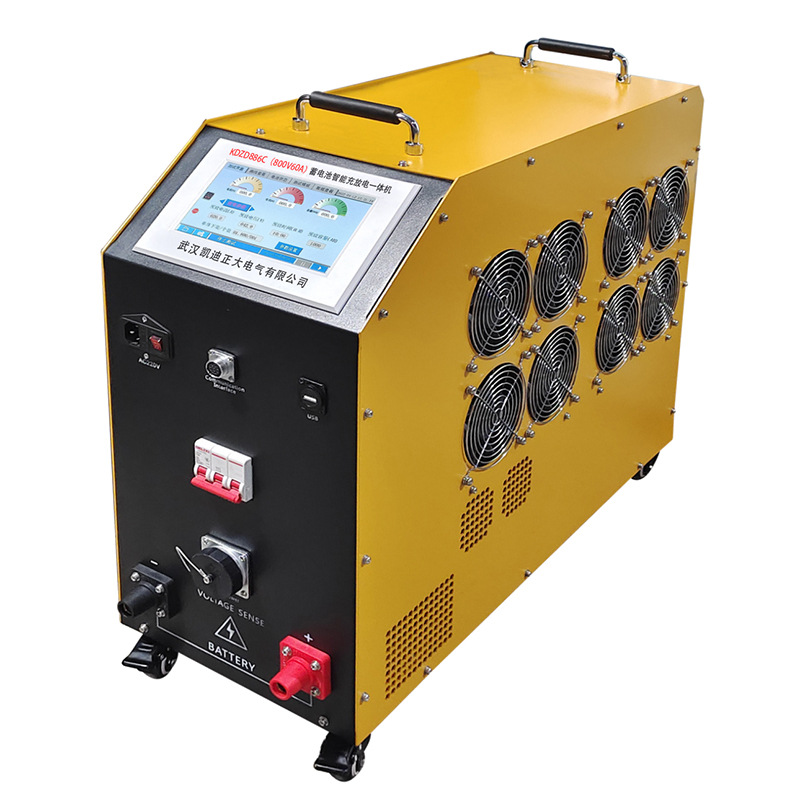 KDZD886C(800V60A)蓄電池智能充放電一體機是集蓄電池恒流放電、智能充電和充放電循環于一體的測試設備,用于定期的電池組檢測及落后電池再生活化。用于電信、基站和電力等部門,也適用于個類型的叉車,高爾夫球車及火車等牽引電池組的測試和循環活化。