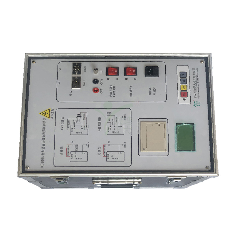 KD600A變壓器介質損耗測試儀是發(fā)電廠、變電站等現(xiàn)場自動測量各種高壓電力設備介損正切值及電容量的高精度儀器。由于采用了變頻技術能保證在強電場干擾下準確測量。儀器采用中文菜單操作,微機自動完成測量。