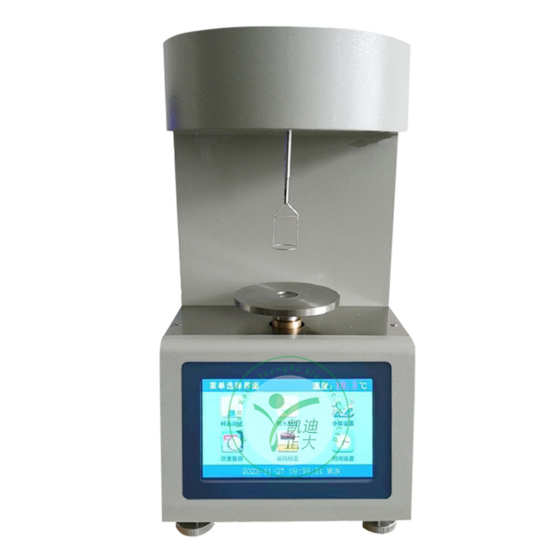 KDZL-807G全自動界面張力測定儀,按照GB6541-86《石油產品油對水界面張力測定法》(圓環法)標準要求,測量各種液體的表面張力(液—氣相界面)及礦物油與水的界面張力(液—液相界面)。儀器采用彩色觸摸屏顯示,漢字菜單提示的無標識按鍵,自動化程度高,工作可靠,重復性好,操作簡單,只需開機后按菜單提示操作,便可完成全部試驗。