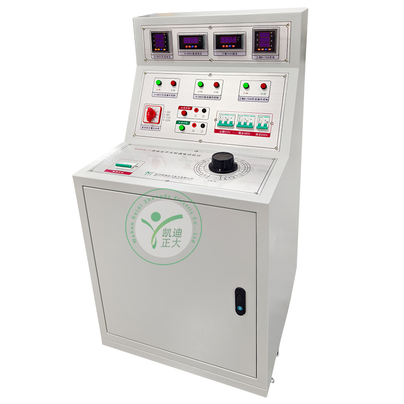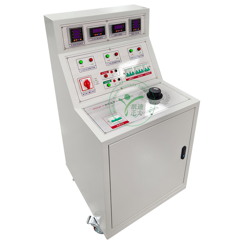 KDGK-II 高低壓開關(guān)柜通電試驗(yàn)臺用于高低壓開關(guān)柜生產(chǎn)廠家對所生產(chǎn)的高低壓開關(guān)柜進(jìn)行出廠前的各項(xiàng)通電試驗(yàn)。它能提供各種交、直流電源,便于對開關(guān)柜的檢測,提高工作效率。