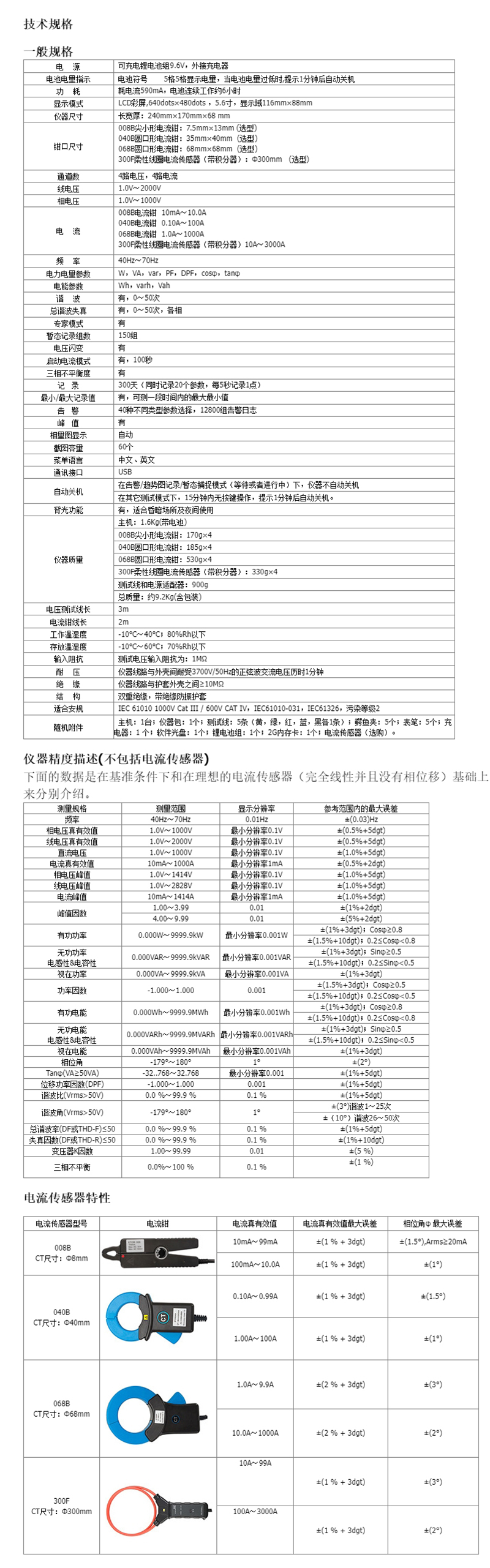 KDZD5000電能質量分析儀是我公司精心研制的現場測試的三相、多功能、智能化、人機操作簡潔的綜合型測試儀器。具有容易使用,超大液晶彩屏顯示,高分辨率,中英文雙語操作界面,防振結構外殼等特點。可同時測量4路電流(ABC三相及中性線電流),4路電壓(ABC三相電壓及中性線對地電壓)、電流電壓的峰值、一段時間內的最大最小值、三相不平衡度、短時電壓閃變、變壓器K因數、有功功率、無功功率、視在功率、功率因數、位移功率因數、有功電能、無功電能、視在電能、諧波比、總諧波失真度等;顯示電流電壓的實時波形、相量圖、諧波比柱形圖;動態捕捉電壓電流瞬時變化,監測啟動電流,監測各電力參數并生成告警列表,長時間記錄測試數據并生成趨勢曲線圖等功能。