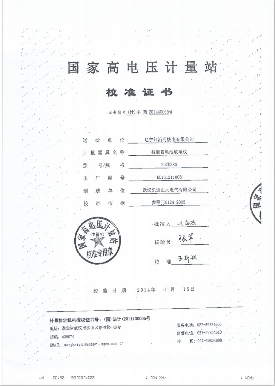 ![]() 國家高電壓計量站-KDZD880校準證書 |