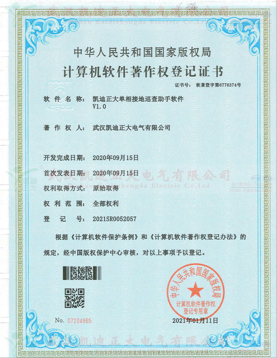 凱迪正大單相接地巡查助手軟件獲得軟件著作權(quán)