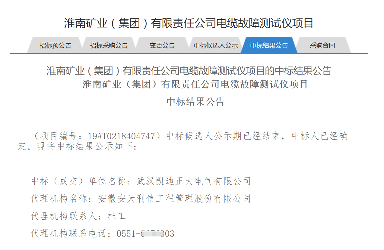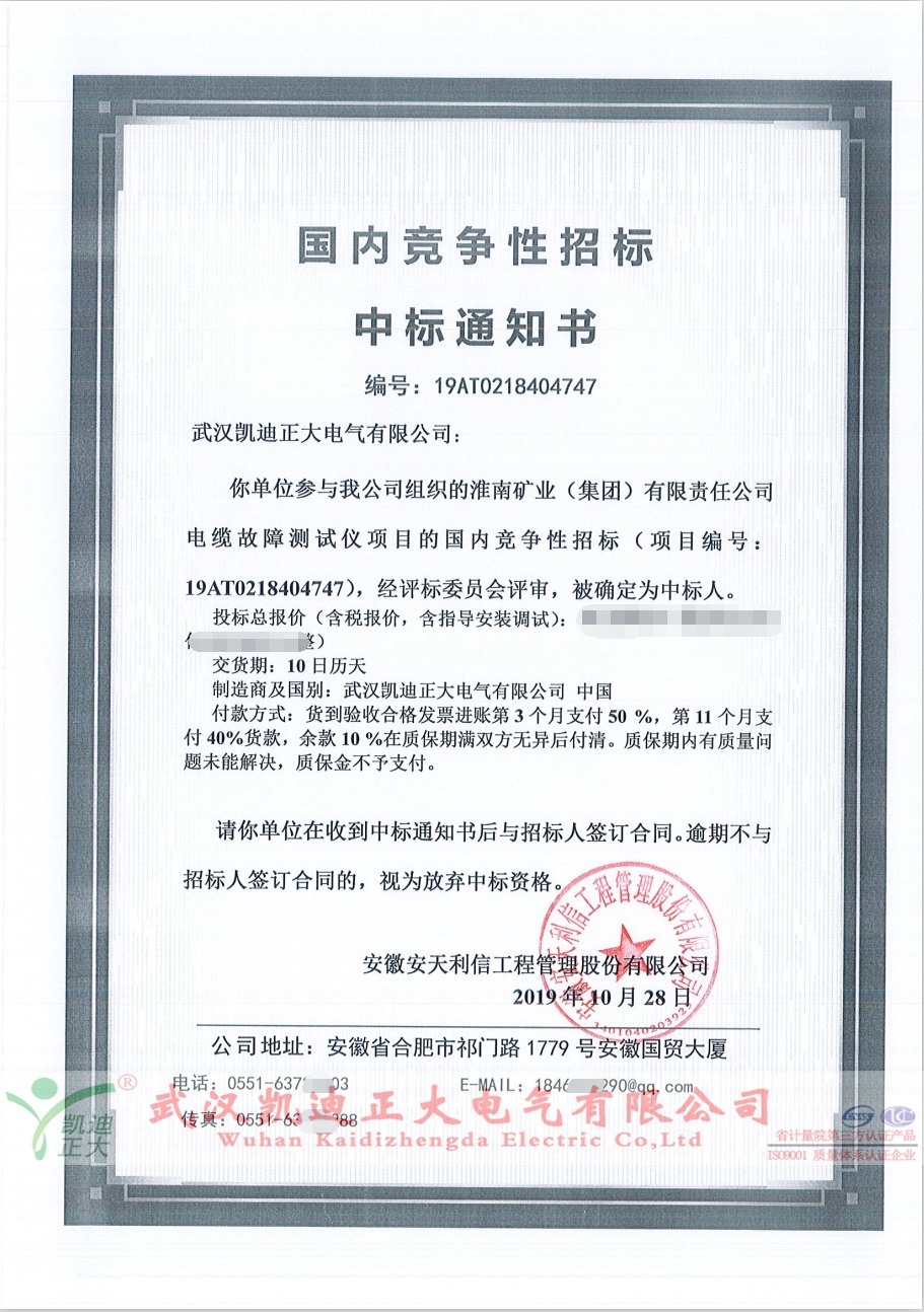 金九銀十,黃金節(jié)。武漢凱迪正大電氣公司參與淮南礦業(yè)(集團)有限責(zé)任公司電纜故障測試儀項目投標(biāo),在經(jīng)過嚴正的評標(biāo),最終確認武漢凱迪正大電氣有限公司為第一中標(biāo)人。