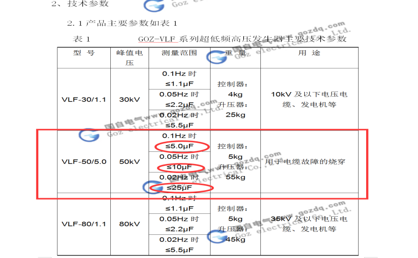 中國名牌武漢凱迪正大(KDZD)超低頻耐壓裝置在50KV峰值,均為1.1μF。