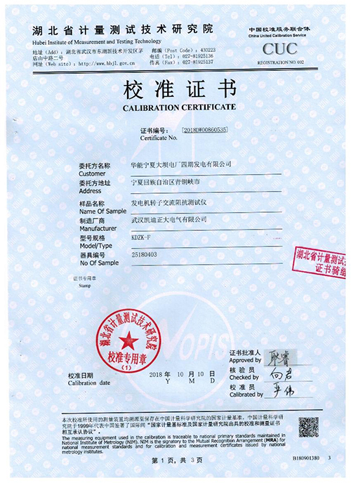 下一篇:武漢凱迪正大KDKC2008有載分接開關測試儀校準證書