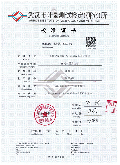 上一篇:武漢凱迪正大KDZD-100KV交直流數字千伏表校準證書